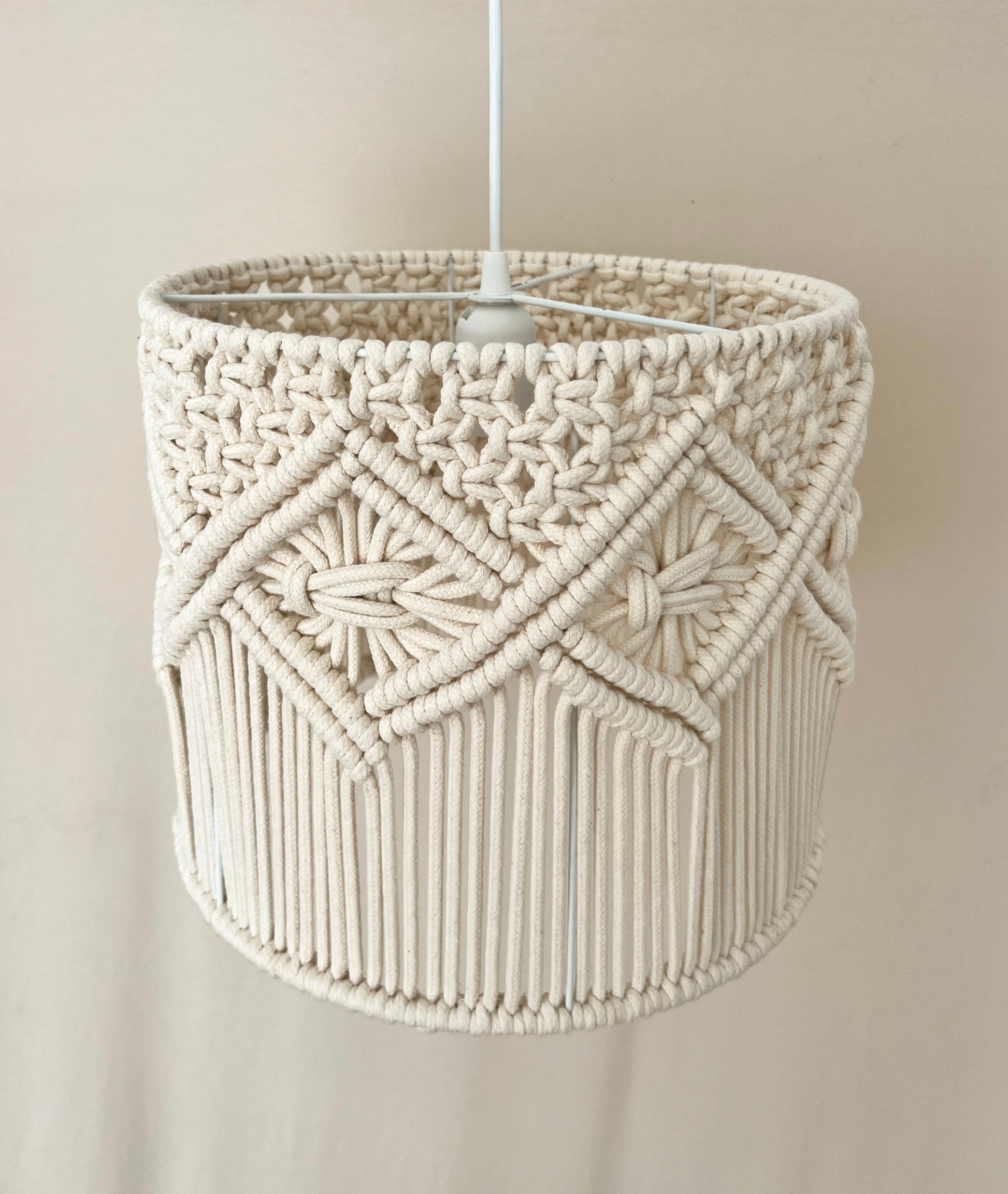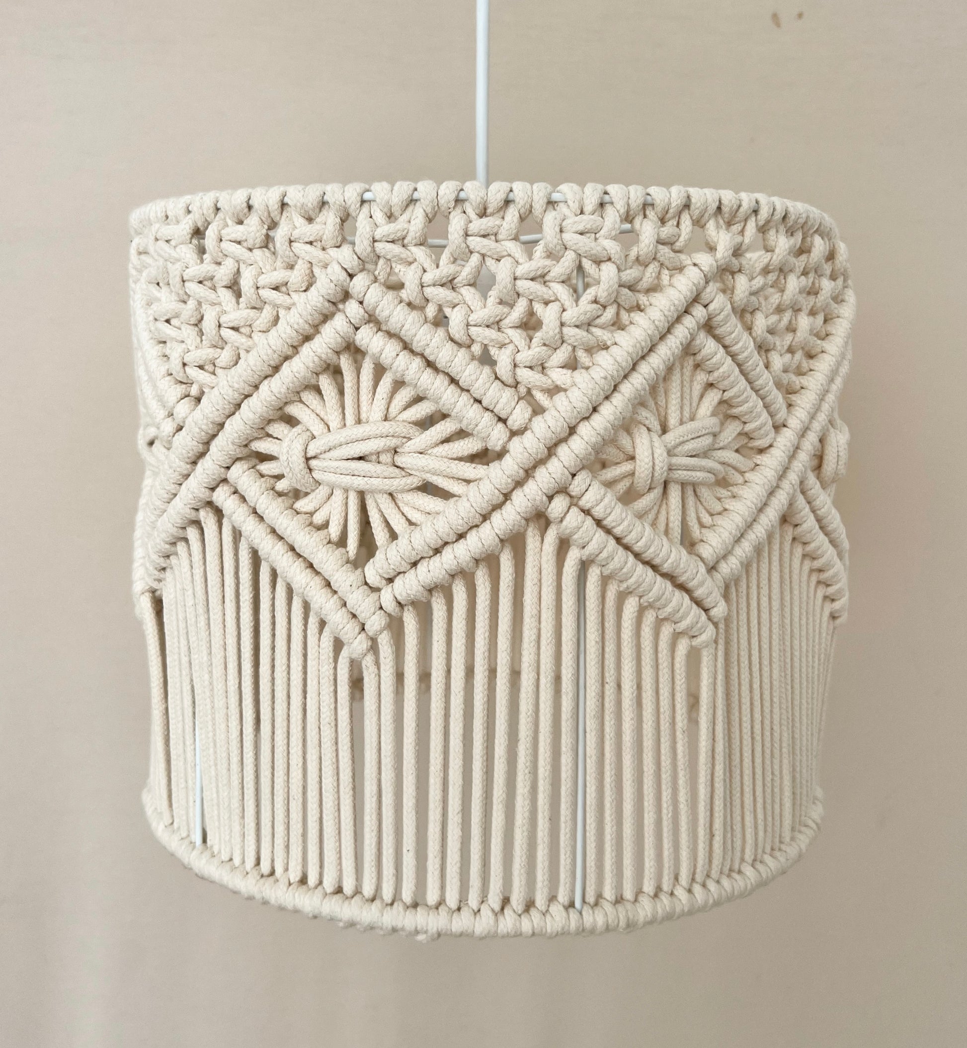 Lámpara colgante tejida a mano en macramé. Estructura de fierro.