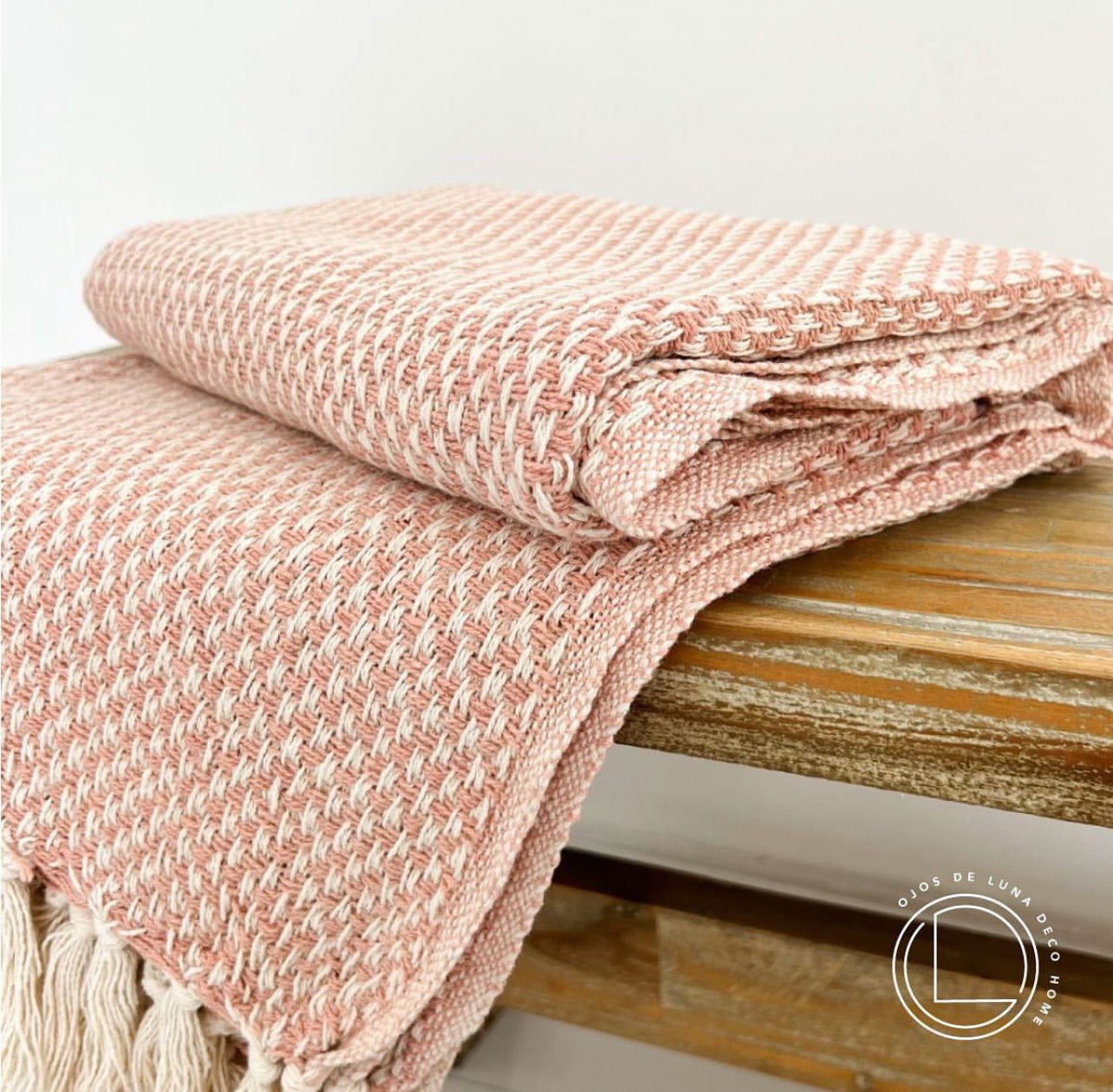 Descubre la suavidad y calidez de nuestra manta de algodón en un encantador diseño en rosado y blanco. Con unas dimensiones de 1,30 x 1,70 m. Esta manta es el complemento perfecto para cualquier hogar, brindando versatilidad en su uso.